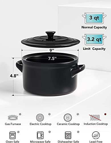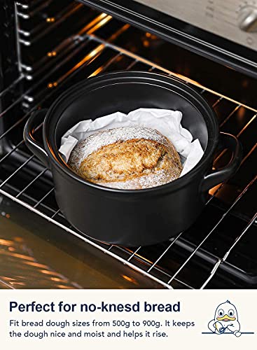LE TAUCI 3 Quart Dutch Oven Pot with Lid, for No Knead Bread, Sourdough Loaf, Bread Clothe Baker, Ceramic Casserole Dish, Stove to Oven, Non-Coated, Use as Bread Pan, Soup Pot, Stew Pot, Black