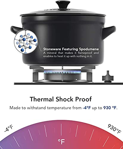 - 【Thermal Shock Resistance】 The high fired ceramic cooking pot is made to withstand temperature shock from -4°F up to 930 °F. It’s also a campers enthusiast’s favorite cooking pot to use, even safe to use over an open fire or on a BBQ grill! Made of natural material, it's also free of chemicals for healthy cooking.