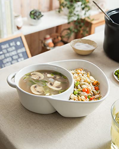 - Large Deep Versatile Bowl - The two partitions of the bowl are designed to be large enough so that you can better hold any food you want.Suitable for adults or children to eat alone, put rice and soup separately inside, not worry about spillage leading to cross contamination of flavors.