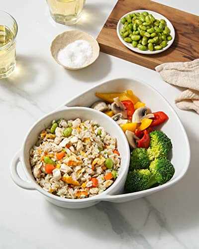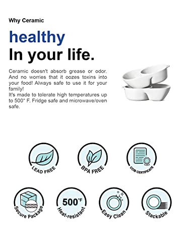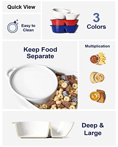 LE TAUCI Anti-Soggy Cereal Bowl, Ceramic Soup Bowl, Chip and Dip Bowl for Cracker and Snack, Divided Serving Bowls Set for Bread, Guacamole and Salsa,Set of 2, White