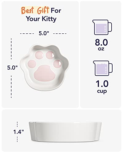 LE TAUCI Cat Food Bowl Ceramic, 8 Oz Small Cat Food Dishes for Indoor Cats, Cat Water Bowl, Relief Whisker Fatigue Cat Bowls, Cute Paw Shaped Kitten Bowls, Cat Plates, Small Animal Food Bowl