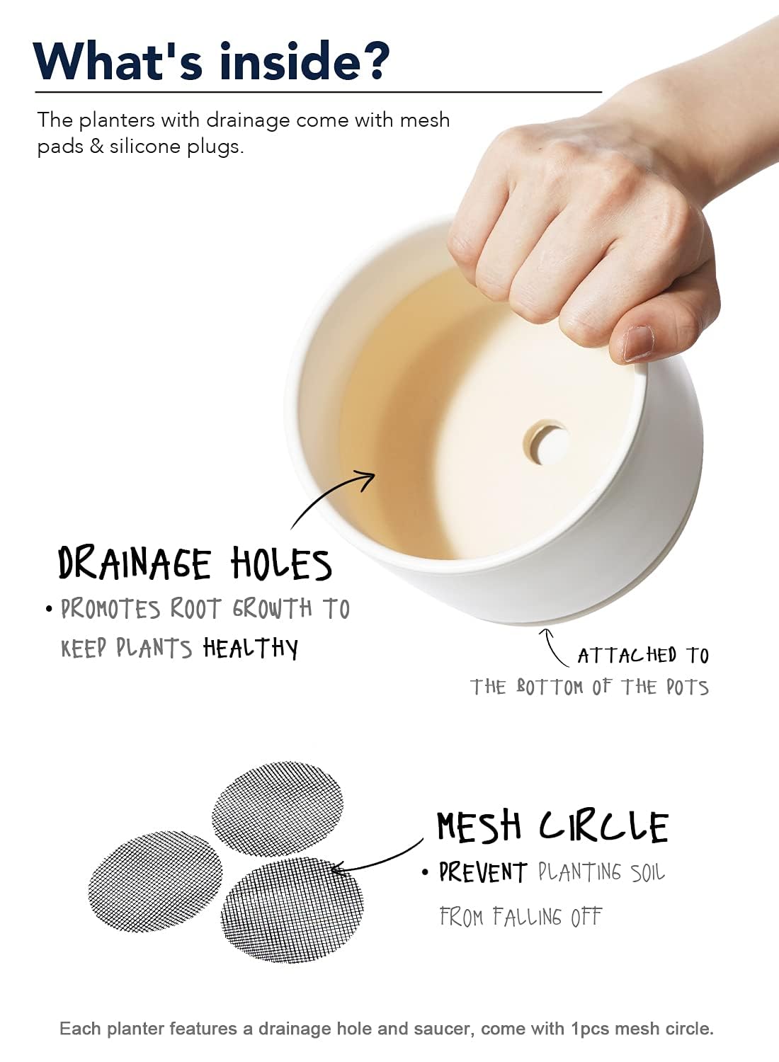 - Modern Design: Sleek and stylish pots with a modern round shape and white ceramic material.