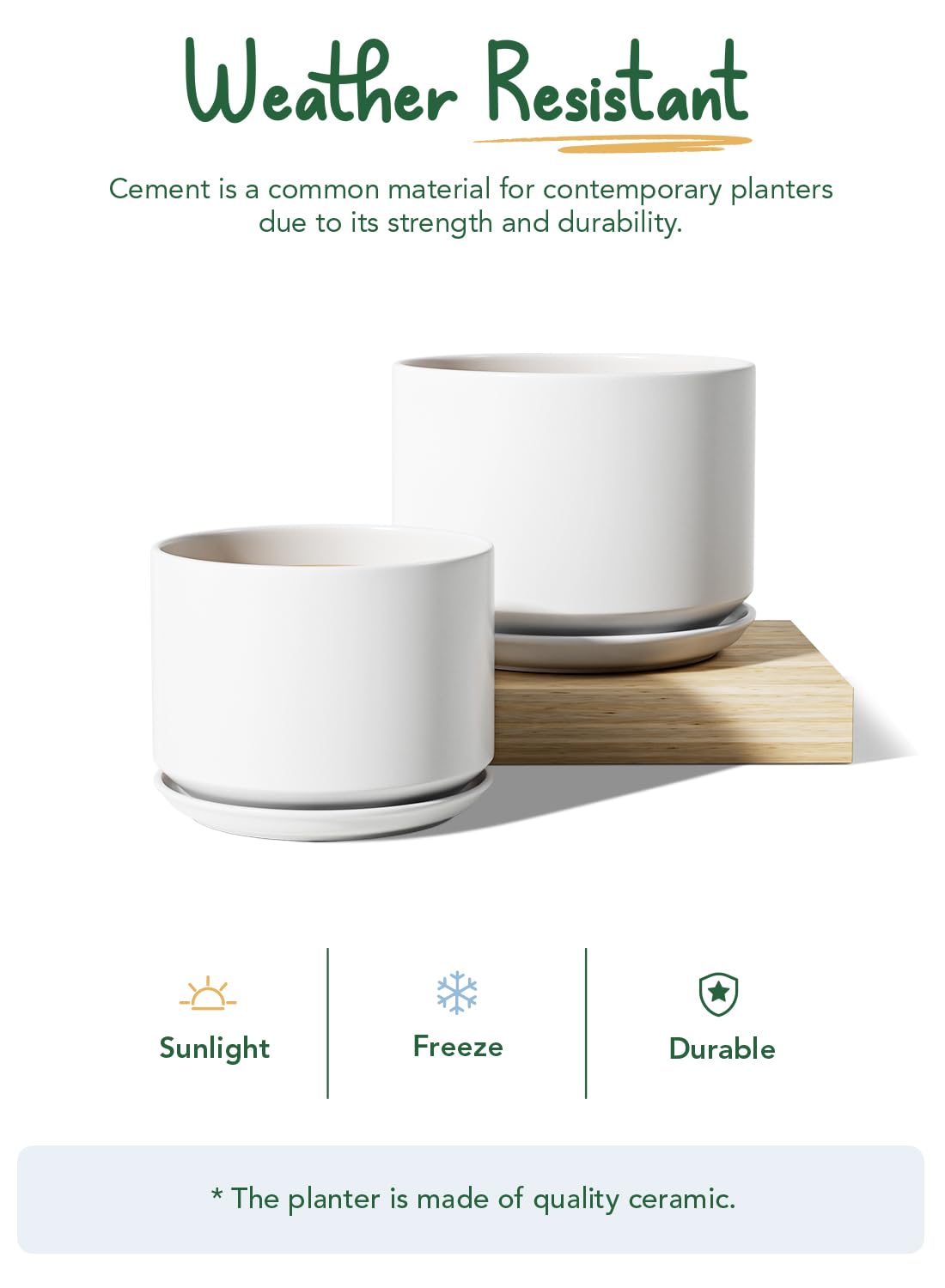 - Real Ceramic- Expertly crafted from top-notch materials, our flower pots for indoor plants surpass faux-ceramic options, like fiber stone, ensuring unmatched durability. Resilient against fading, deformation, or rusting, our white planters withstands prolonged exposure to wind and sunlight. Rest assured, your plants will flourish in style for years to come! (*Plant not included.)