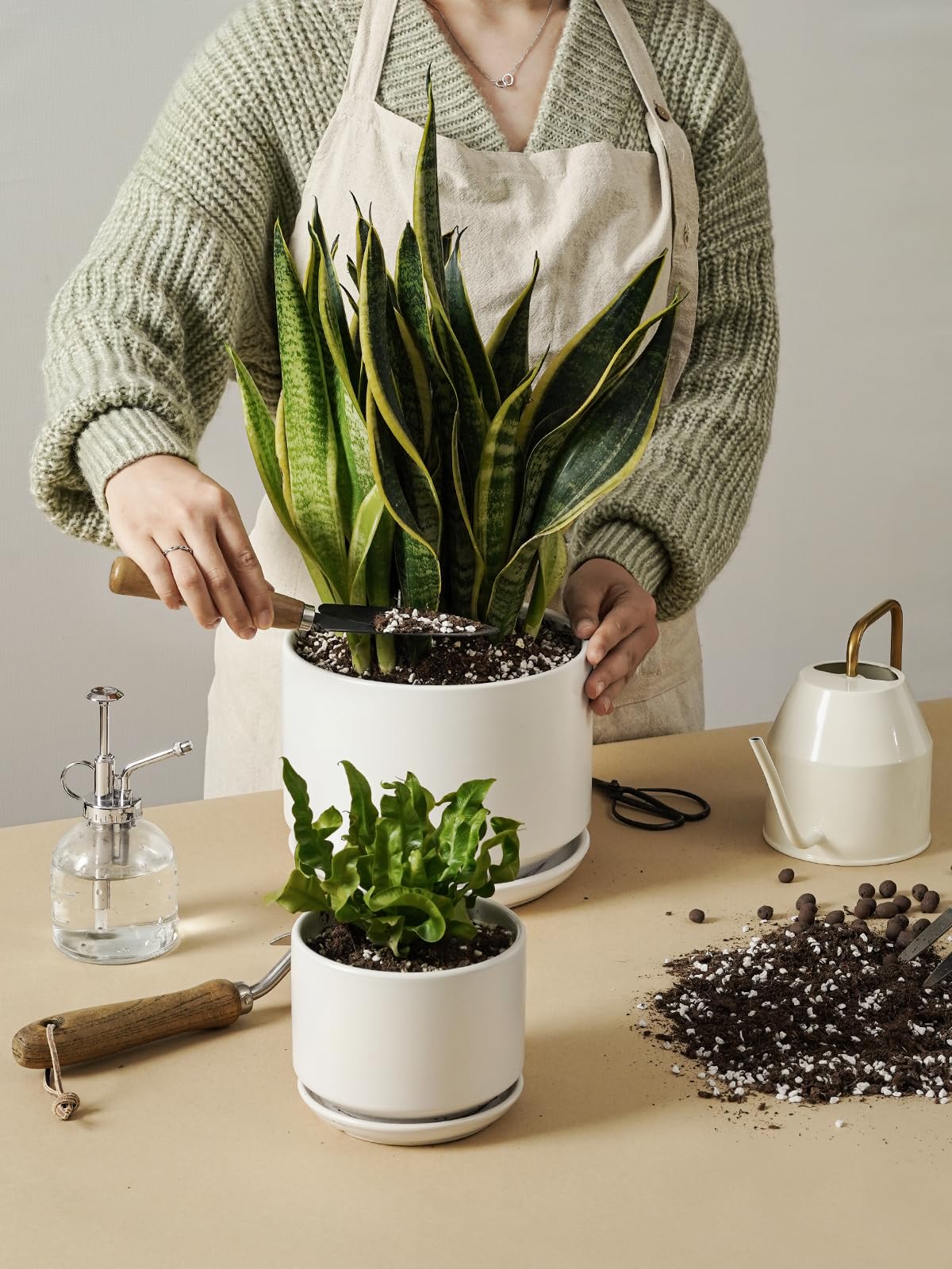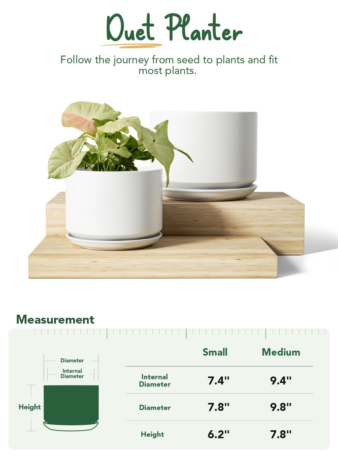 - Magic of Dimensions- Medium size: 10" in Diameter, 7 4/5" in Height. Small size: 8" in Diameter, 6 1/5" in Height. This spacious design is tailor-made for your indoor oasis. 8 inch plant pot can be used for a variety of plants, such as ZZ Plant, Orchid, Aglaonema Wishes, and more. 10 inch plant pot can be used for a variety of plants, such as Snake Laurentii, Majesty Palm, Monstera Deliciosa, and more.