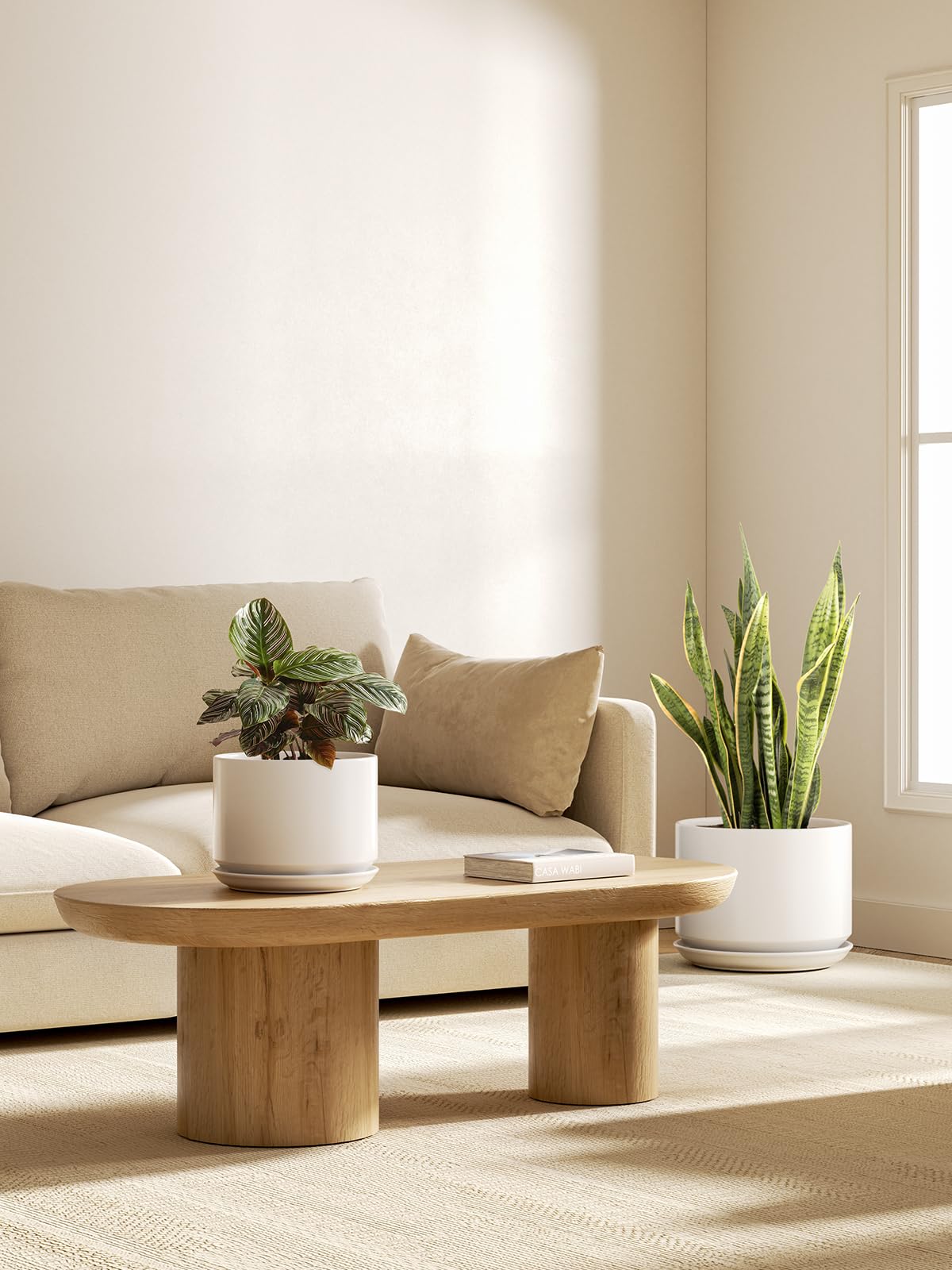 LE TAUCI Ceramic Plant Pots, 8 + 10 Inch Pots for Plants, Indoor Plant Pots for Home and Office, Modern Flower Pots Fit Mid Century Plant Stand, Planters with Drainage Holes and Saucers, White