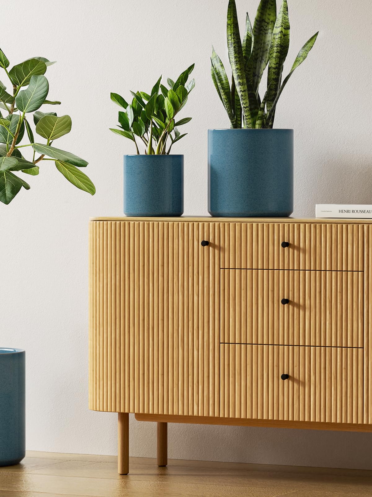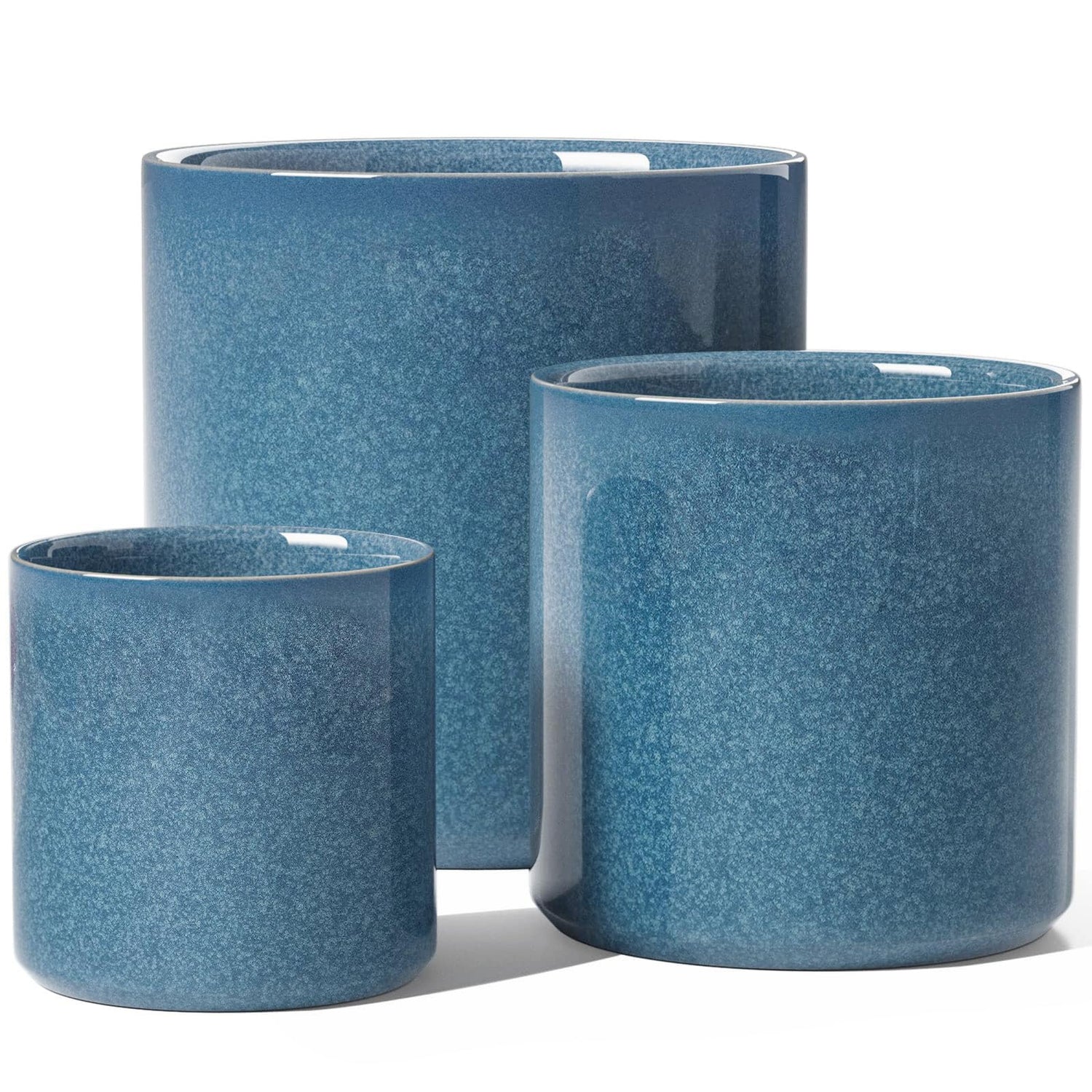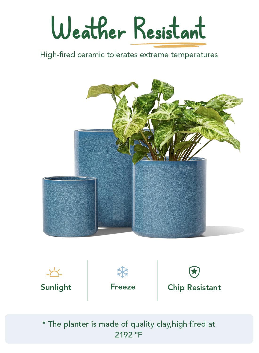 LE TAUCI Ceramic Plant Pots Indoor, 10 Inch 8 Inch 6 Inch Planters for Indoor Plants, Mid-Century Modern Flower Pots with Drainage Hole, Cylinder Round Planter Pots, Set of 3, Reactive Glaze Blue