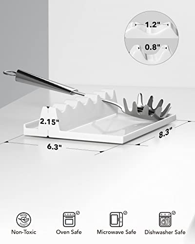 LE TAUCI Ceramic Spoon Rest for Stove Top, Spoon and Lid Rest for Kitchen Counter, Spoon Holder with Drip Pad for Multiple Utensils, Heat-Resistant, Housewarming Gift - 9 inch, Set of 1, White