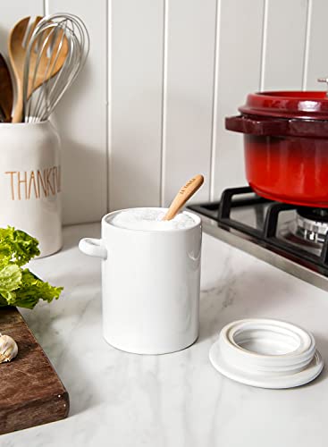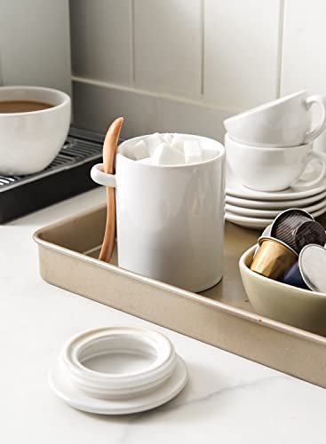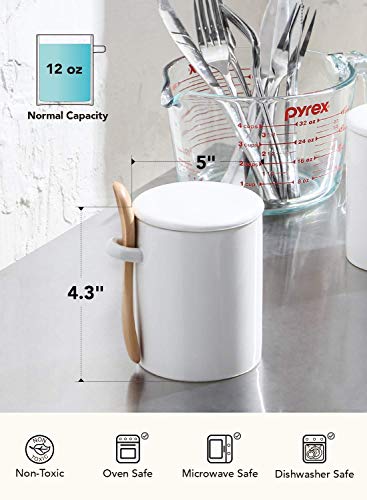LE TAUCI Sugar Container, Salt Canisters, 12 FL OZ (350ML) Sugar Bowls with Lids and Spoon for Kitchen Set of 2, Airtight Seal Coffee Container Tea Jar ,White