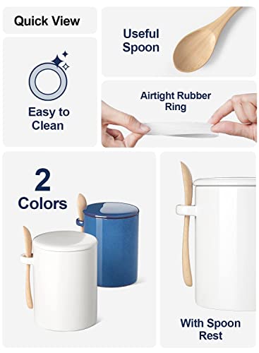 - With A Useful Spoon - Featuring the simple but exquisite design, the sugar container is also a pretty decoration to match well with the design style of the kitchen or table. Our ceramic jar comes with a spoon, allowing you to better take out the amount of food. Enjoy your delicious coffee or milk with a spoon of sugar for breakfast and then have a nice day.
