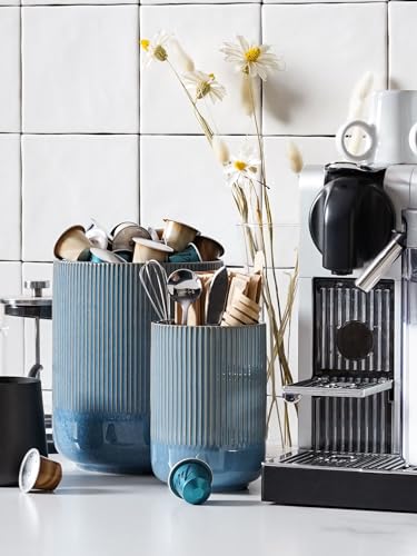 - Chic Modern Home Decor - Our kitchen utensil organizer features a crisp, coastal finish highlighted by vertical ribbed&fluted stripes. This stylish design seamlessly complements any kitchen decor, elevating both your culinary efficiency and the overall ambiance of your home.