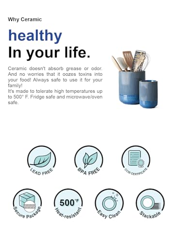 - Solid and Secure - LE TAUCI kitchen utensil holder for kitchen counter provides easy access to your utensils, offering a stable and relaxing experience due to its substantial weight. Crafted from premium ceramic materials, these holders are not only robust but also easy to clean. Rest assured, they will remain securely in your countertop, giving you peace of mind while using them.